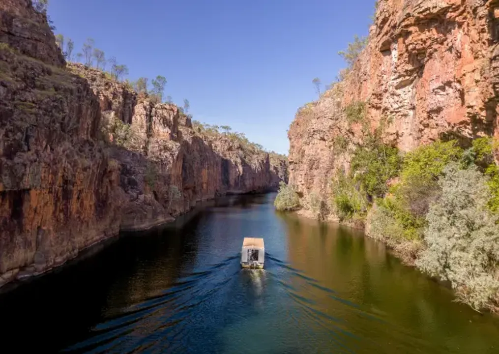 Immergetevi in una piacevole crociera attraverso le antiche meraviglie naturali della gola di Nitmiluk (Katherine). Questo sistema fluviale di 13 gole è fiancheggiato da scogliere alte 70 metri, dove potete ammirare l'antica arte rupestre aborigena, una natura ed una fauna selvatica spettacolare, mentre imparate le storie del popolo Jawoyn, gli abitanti tradizionali dei terreni circostanti.
